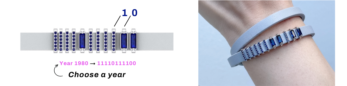 If you’re unfamiliar with binary code, it's the language of computers that uses only two digits, 0 and 1, to represent all the digital data we send and receive on a daily basis. It's beautifully simple, yet so profound—much like the love you share. By encoding her birth year in binary, you're giving her a piece of jewelry that holds a shared secret. To the outside world, it’s a trendy, sleek design. But to the two of you, it symbolizes the year that means everything.