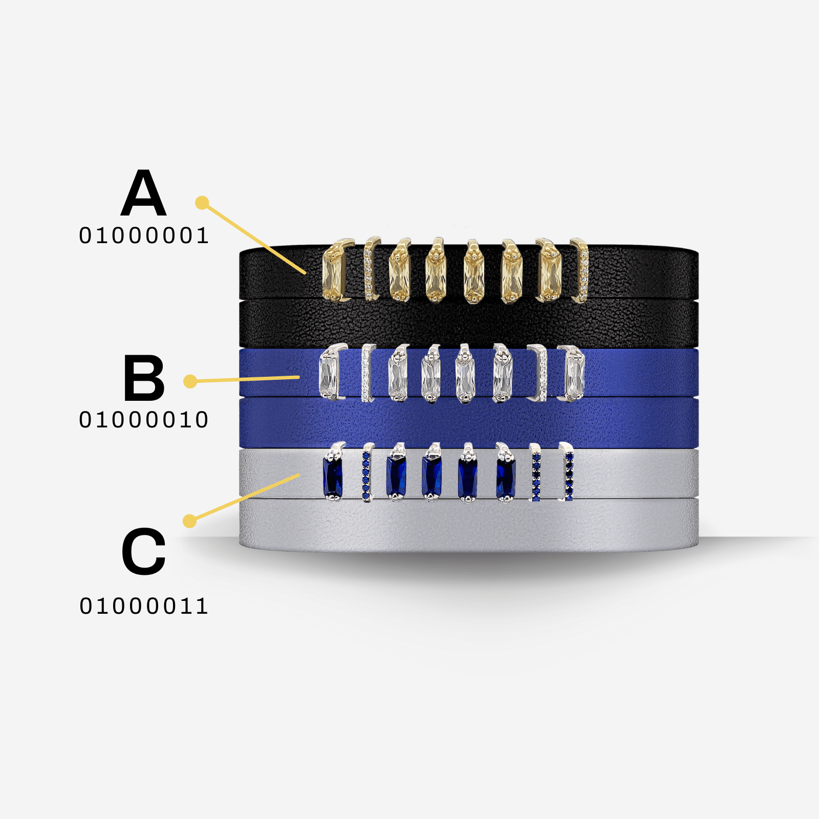 Welcome to the world of Are Jei’s Encoded Jewelry, where jewelry meets the magic of personalization through the brilliance of binary code.