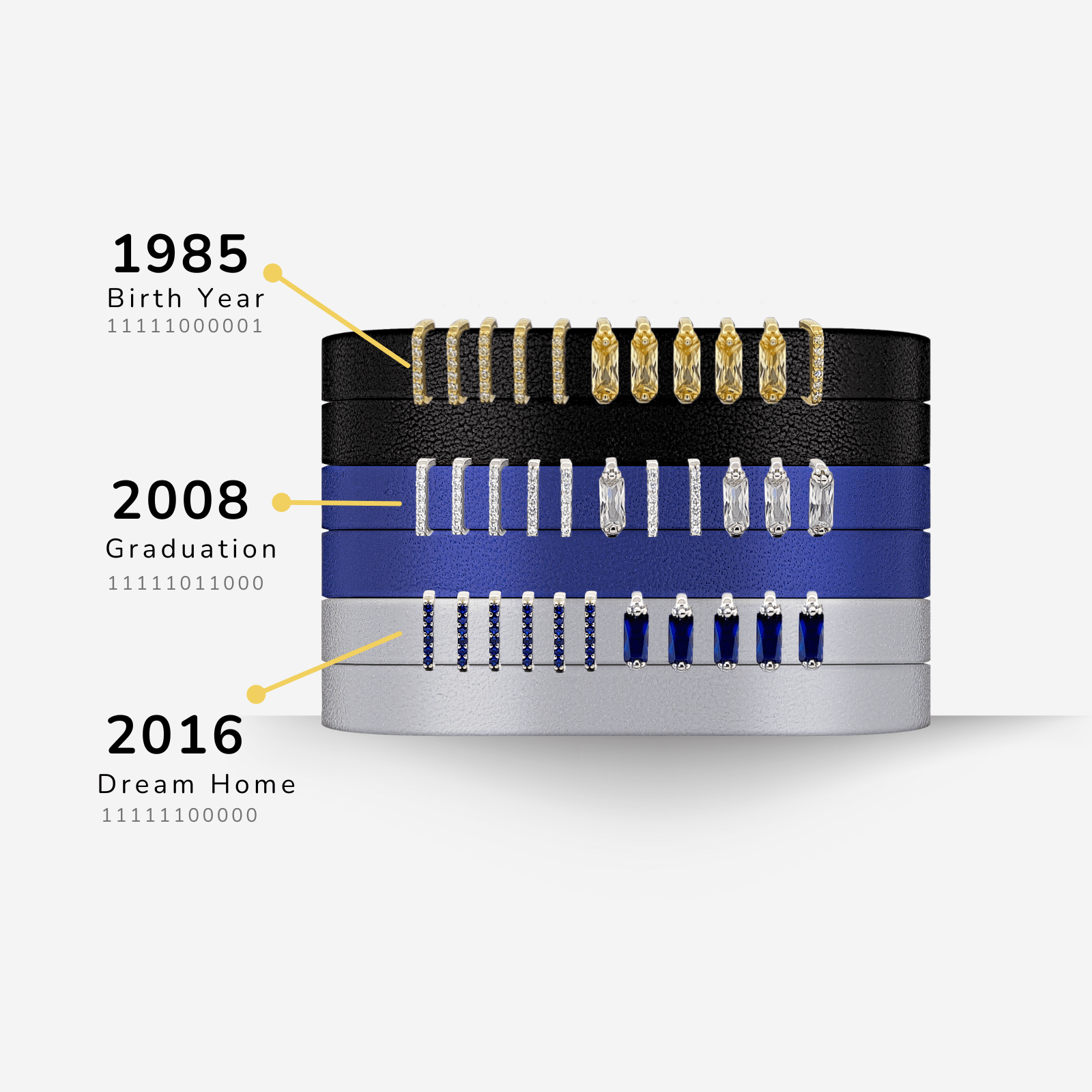 The personalized code on the Are Jei 's bracelets not only offer a unique way to express individuality, it is also the perfect ‘wow’ for meaningful celebrations big and small. Whether for birthdays, anniversaries, graduations, or those "just because" moments, it's a unique jewelry gift that is truly different from anything else out there.