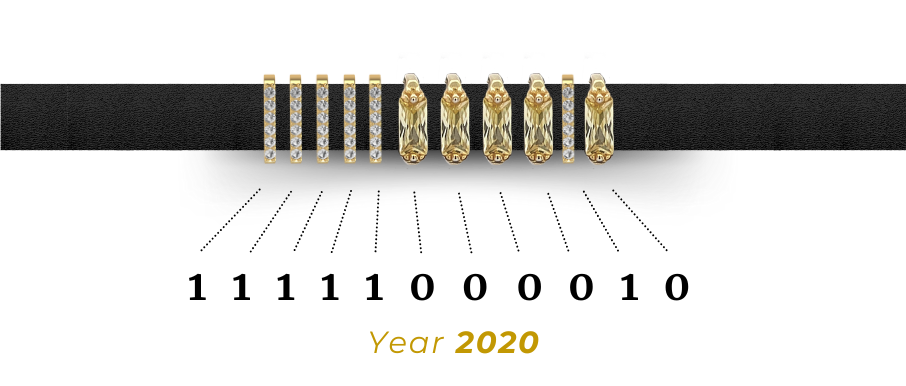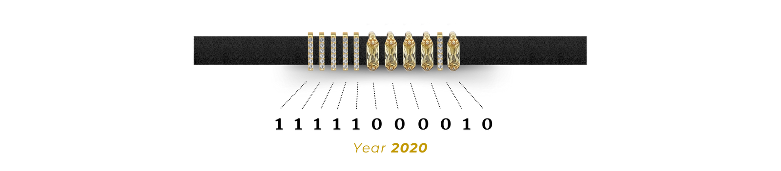 This isn’t just another bracelet. It encodes the most important year of your life, using 0 and 1 shaped charms, inspired by the hidden language of all technology: binary code.